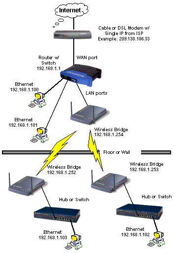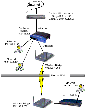 Prinzipiell werden durch Wireless Bridging zwei drahtgebundene (meist