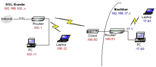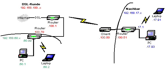 Nachbar muss den WLAN-Router des DSL-Kunden als Default-Gateway auf der